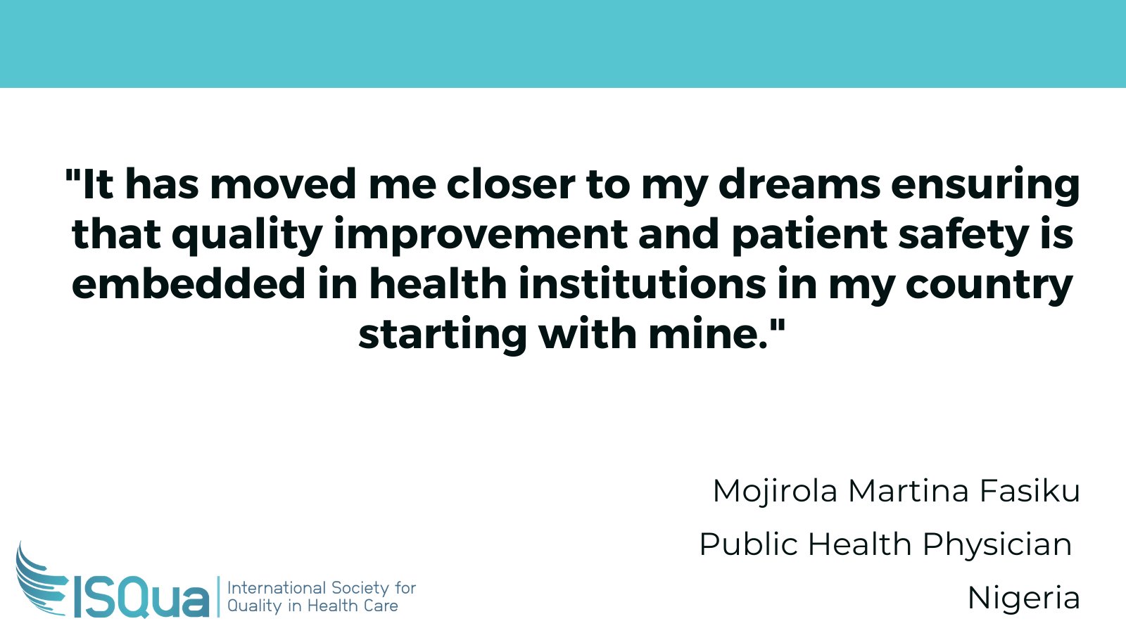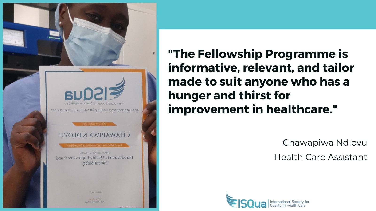 I am very happy and thrilled to receive the prestigious ISQua Lucian Leape Patient safety Fellowship Award for 2019 and I look forward to honing my skills further in the field of healthcare quality and patient safety through my experiences during this fellowship.